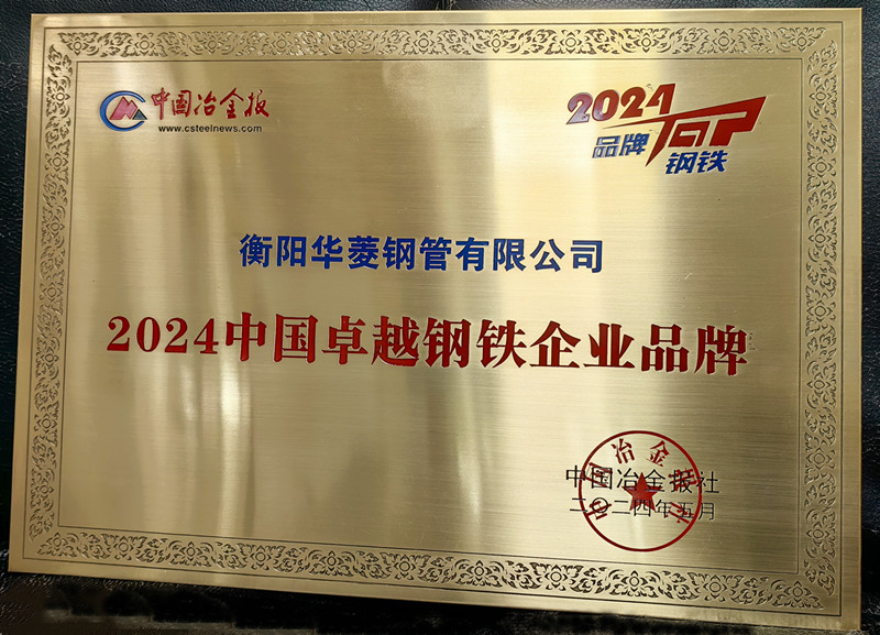 6月24日,衡钢收到中国冶金报社发来的“2024中国卓越钢铁企业品牌”奖牌,这是公司连续第三年获得这一殊荣。